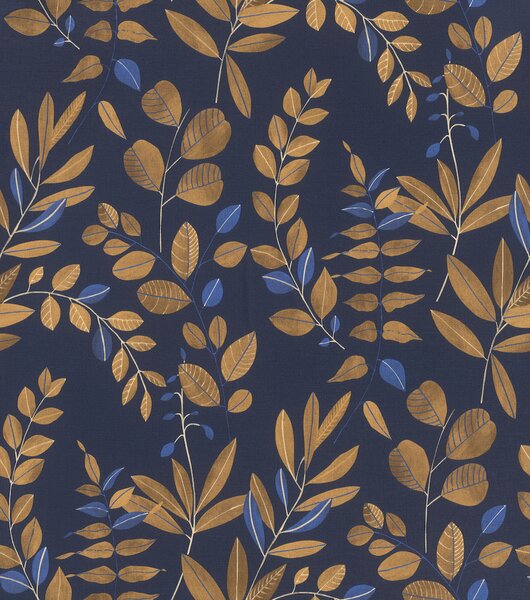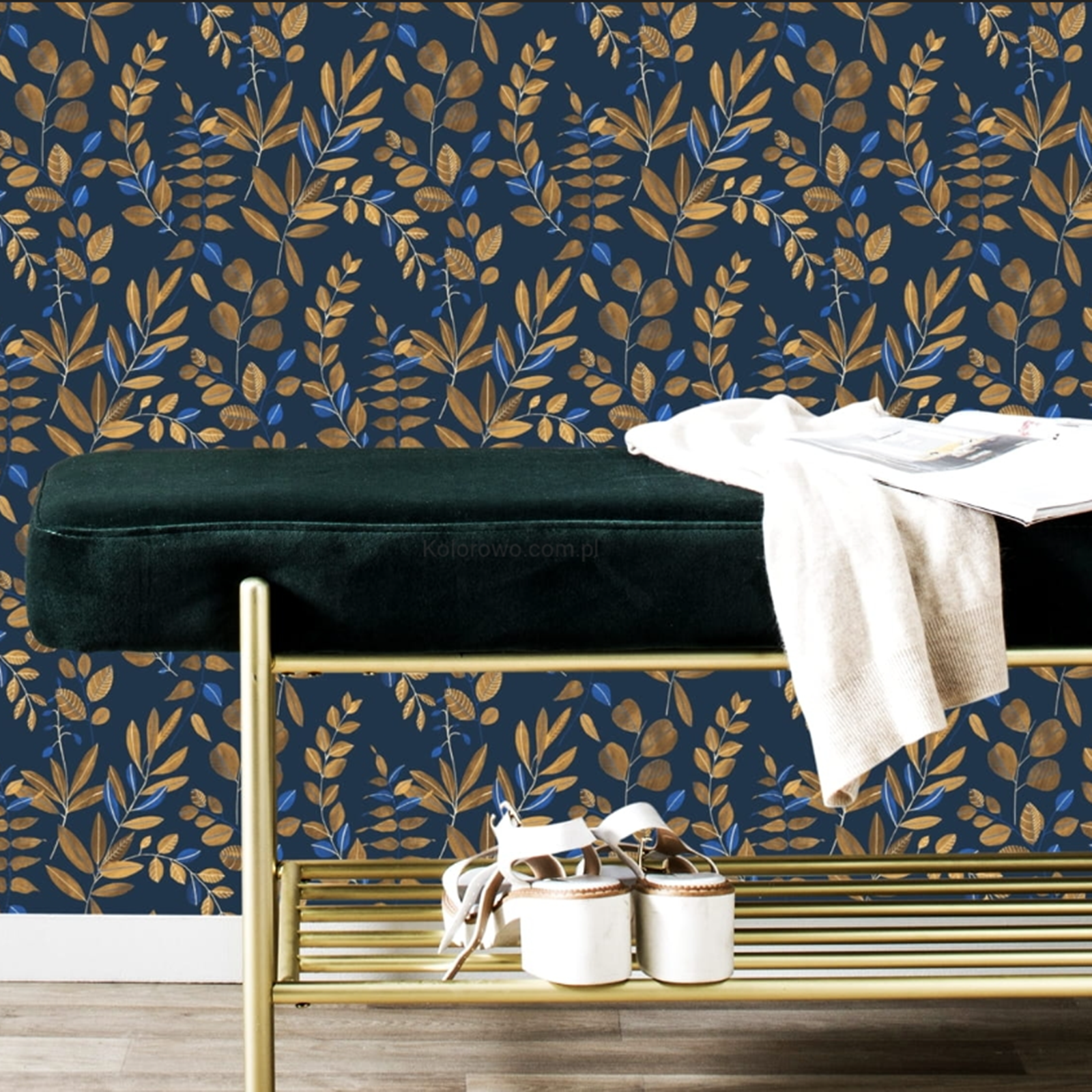 Fabulous navy textured background with gorgeous golden brown leaf motif. Paste the wall vinyl.